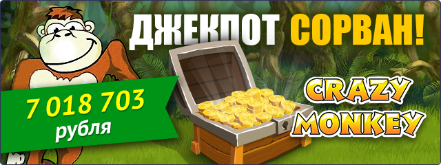 Похоже, у кого-то сегодня счастливый денек! Игрок buramani***** сорвал 7 018 703 руб. в Crazy Monkey! Однозначно, удача сегодня на его стороне. Может, она и вас не обойдет? Крутите любимый слот и следующий джекпот будет ваш!